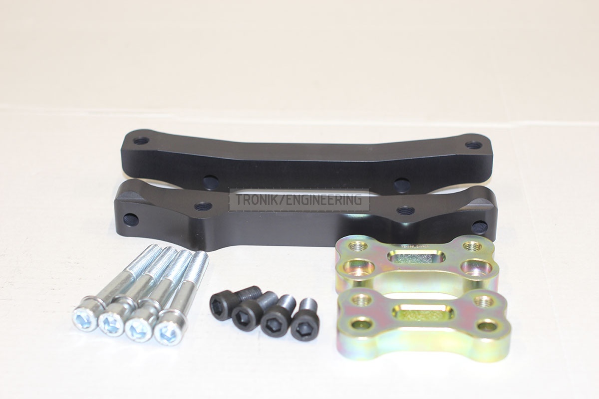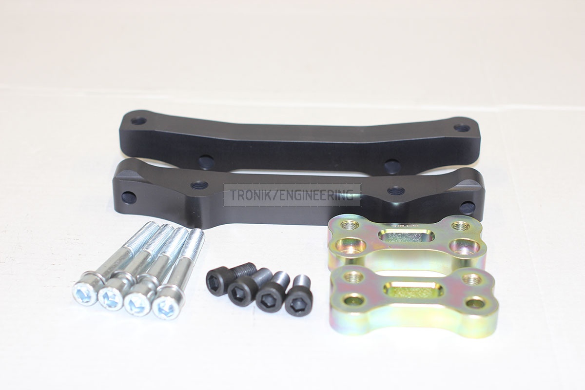 These rear adapters allow you to use your brake caliper(OEM 34 21 6 793 053, 34 21 6 793 054, 34 21 6 793 047, 34 21 6 793 048) and the brake disk 396 * 24 (34 21 2 284 103, 34 21 2 284 104, 34212284103, 34212284104) from M5 on the rear axle.